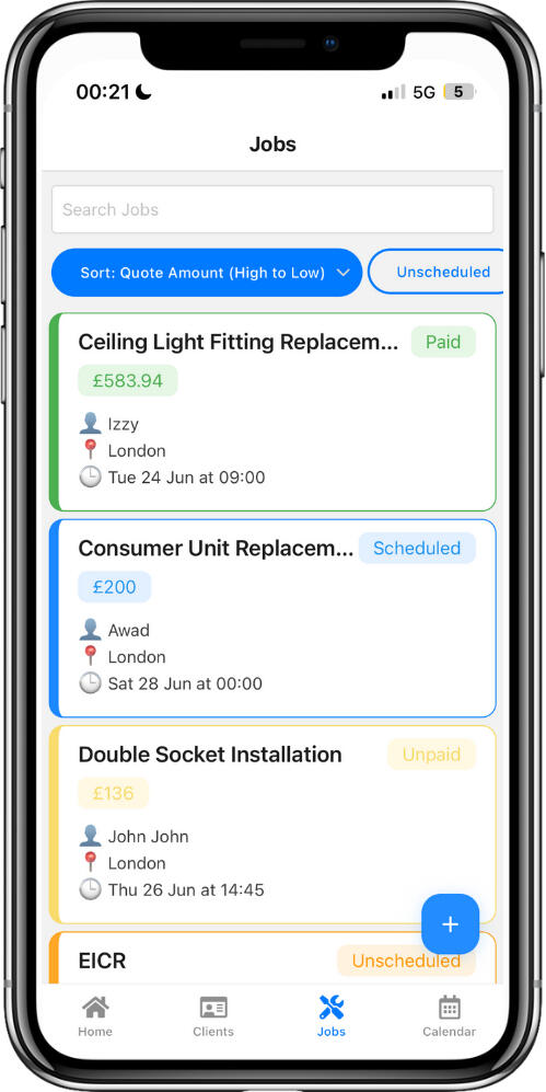 Keep your pipeline, diary, and client chats in one app. Track status at a glance, reply instantly, and keep customers in the loop. Centralise everything.Lost texts mean lost jobs.