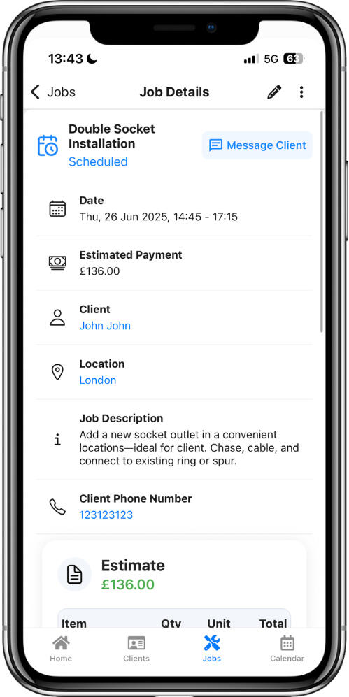 Keep your pipeline, diary, and client chats in one app. Track status at a glance, reply instantly, and keep customers in the loop. Centralise everything.Lost texts mean lost jobs.