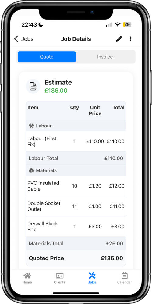 Fire off a professional quote in seconds, schedule the job on the spot, and issue the invoice when it’s done... without switching apps.Speed wins work!
